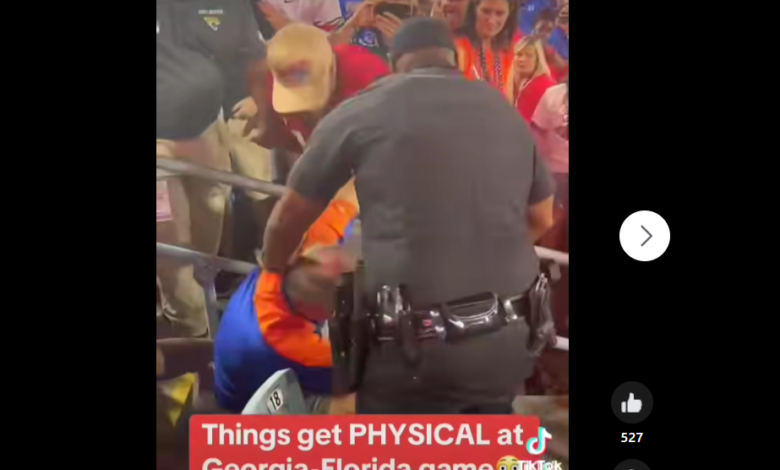 Two separate altercations during the Georgia-Florida game have gone viral and led viewers to believe that they both are related to one another, but are not.